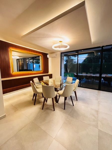 La casa se entrega equipada (sin muebles) con lámparas , espejos, climas, ventiladores, cortinas, paneles solares, boiler eléctrico, presurizador, suavizador , control de iluminación digital y de riego automatizado.