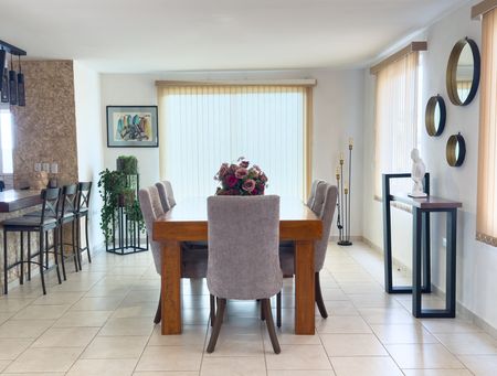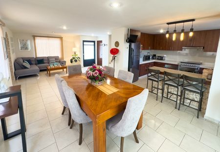 Descubre el confort y la tranquilidad de vivir en esta hermosa casa totalmente amueblada, ubicada en un exclusivo fraccionamiento privado con vigilancia y seguridad las 24 horas. Diseñada para ofrecerte comodidad y funcionalidad, esta propiedad destaca por su amplitud, iluminación natural y espacios cuidadosamente pensados para disfrutar al máximo cada rincón.